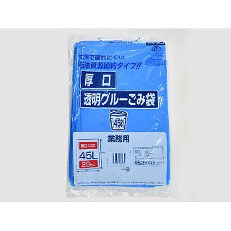 ‐ 岡崎市ゴミ袋透明ブルー 福助工業 0045×90Lサイズ 1ケース(1枚×20袋)